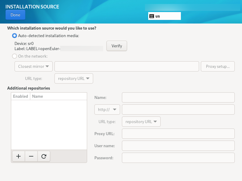 When the network source is used for installation, you need to set the URL of the network source.