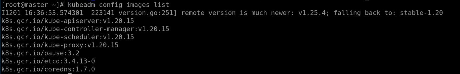 shellkubeadm config images listPay attention to the versions in the output, as shown in the figure.