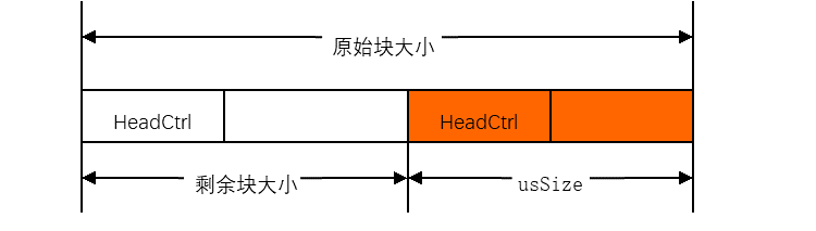 All idle blocks are connected in series in the form of a bidirectional idle linked list. If the first idle block obtained from the linked list is large, that is, after a usSize memory block is split, the remaining space can be allocated at least once, The remaining idle blocks are added to the corresponding idle linked list.