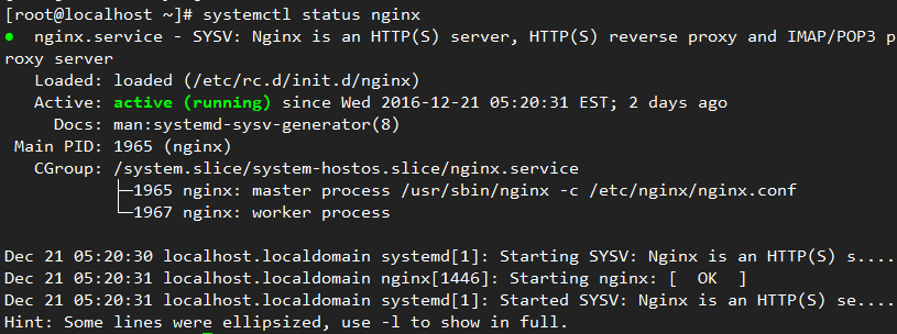 shellsystemctl status nginx- Figure 1 indicates that the Nginx service is started successfully.