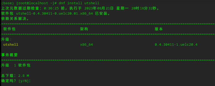 Run the rpm command to install utshell. Assume that openEuler 23.09 is used.