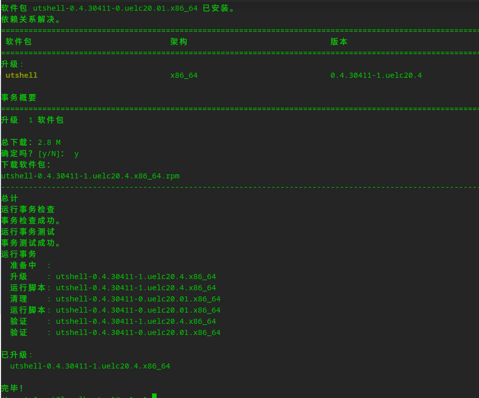 rpm -e utshellUsage