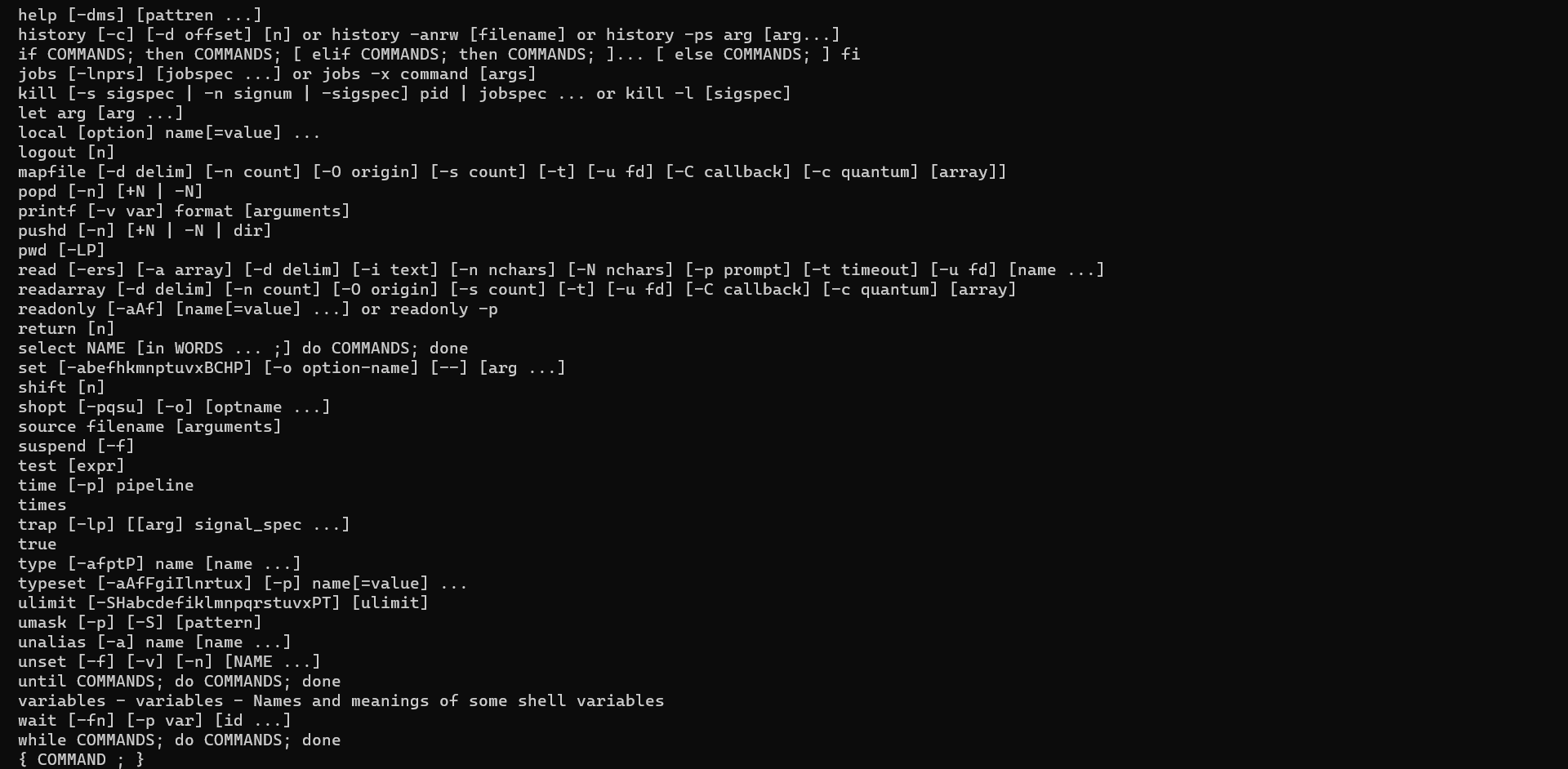 utshell has the following built-in commands: