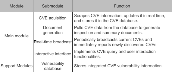 Common Vulnerabilities and Exposures (CVEs) plays a vital role in ensuring system security and stability, making effective handling and management of CVE data essential. To address this, the CVE-ease vulnerability management system was developed, enabling real-time acquisition, management, and reporting of vulnerability information.