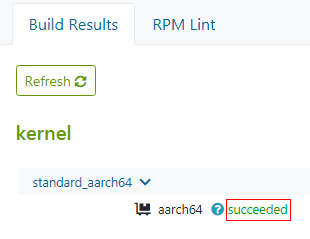 After the files are copied and replaced, OBS automatically starts to build the RPM software package. Wait until the build is complete and view the build status in the status bar on the right.