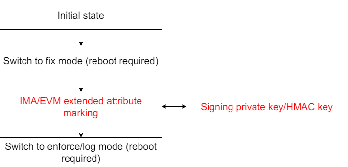 In IMA appraisal mode, deployment requires the system to first enter fix mode to mark IMA/EVM extended attributes, then switch to appraisal mode for startup. Additionally, upgrading protected files necessitates rebooting into fix mode to update files and extended attributes. This process reduces deployment efficiency and exposes keys in the runtime environment, compromising security.