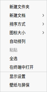 Desktop is the main screen you see after logging in. On the desktop, you can create a new file/folder, sort files, open in terminal, set wallpaper and screensaver and etc. You can also add shortcuts for applications on desktop by using Send to desktop.