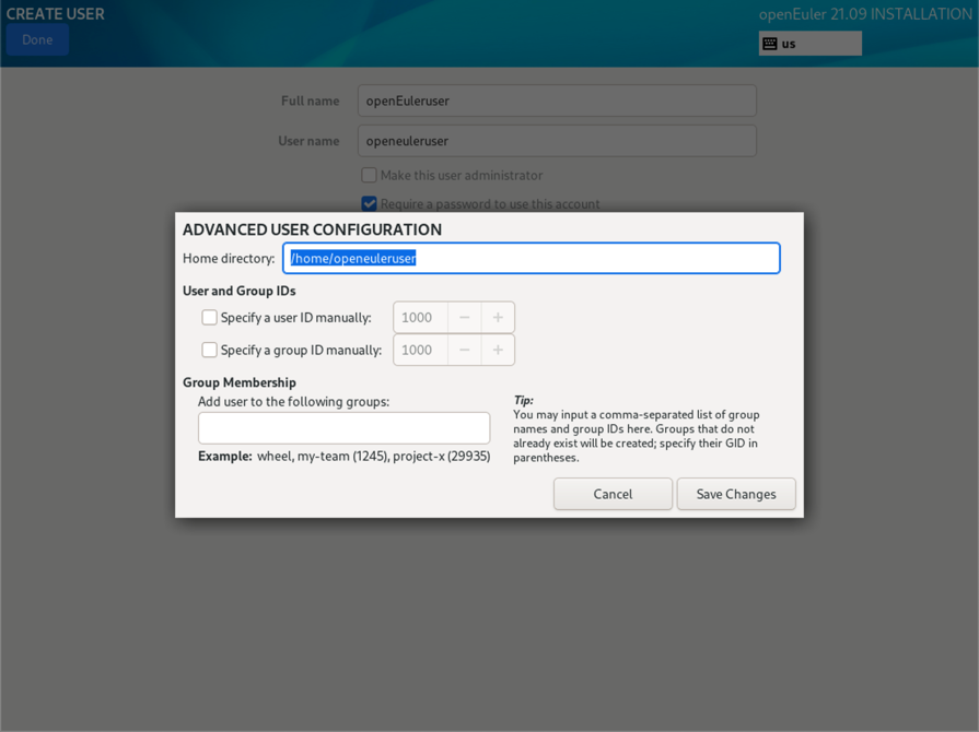 Install openEuler 21.09: Install openEuler on your server in GUI mode.