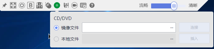 在虚拟界面工具栏中,单击虚拟光驱工具如下图所示。