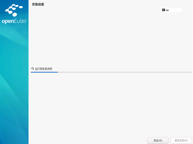 安装过程执行完成后,openEuler完成安装,单击“重启系统”后,系统将重新启动。