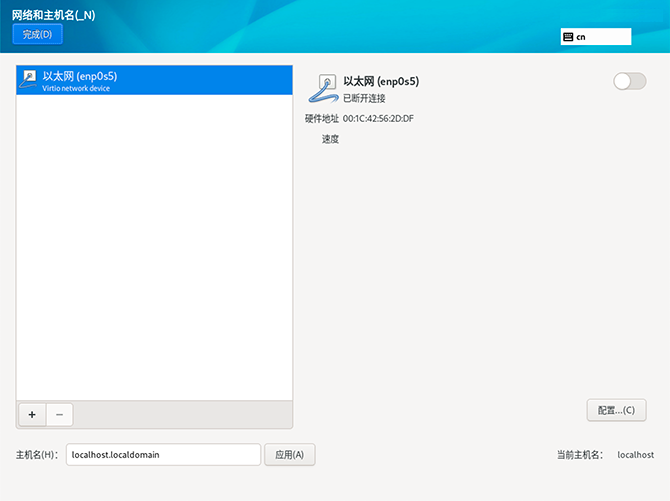 在“安装信息摘要”页面中选择“网络和主机名”,设置系统的网络功能。