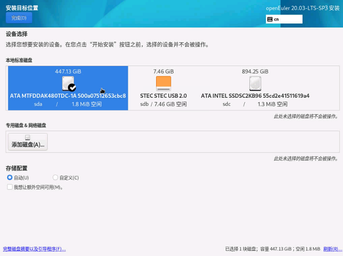 如果是在未使用过的存储设备中执行全新安装,或者不需要保留该存储设备中任何数据,建议选择“自动”进行自动分区。设置完成后,请单击“完成”返回“安装信息摘要”页面。