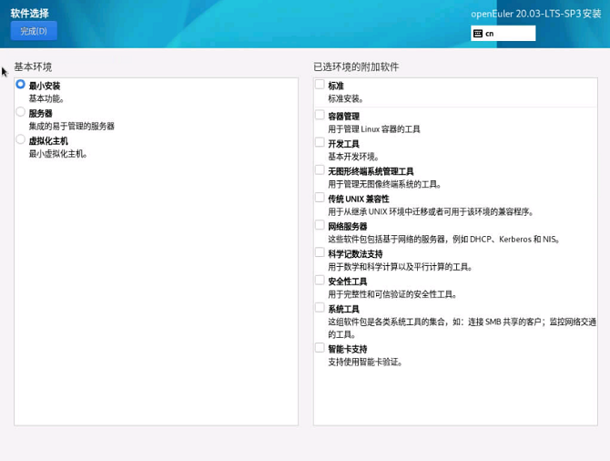 Install openEuler 20.03-LTS-SP4 —— 在您的服务器上使用图形用户界面模式安装。