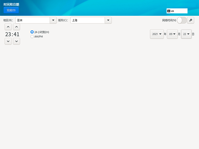 - 如需使用网络时间,请保证网络能连通远程NTP服务器,设置网络具体请参见“设置网络和主机名”。