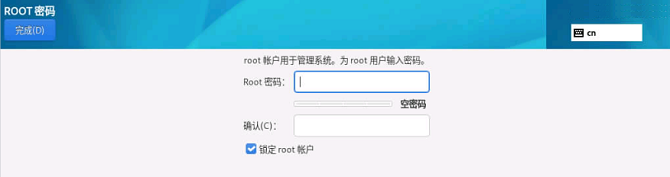 在“ROOT密码”界面若选择“锁定root帐户”则root帐户将禁用。