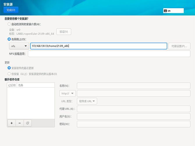 nfs 方式的安装源如下图所示,输入框内容根据的 nfs 地址输入。