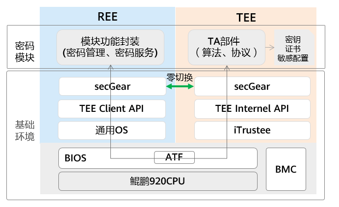 - 管理服务:运行在REE侧,负责对外提供密码服务,转发请求到TEE中处理。