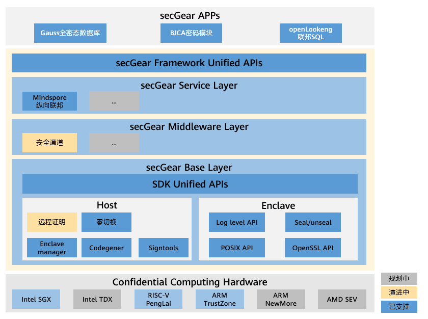 - Base Layer:机密计算SDK统一层,屏蔽TEE及SDK差异,实现不同架构共源码。