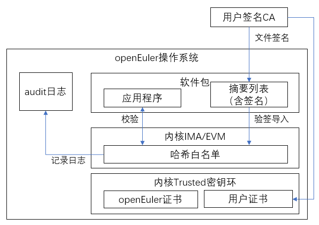 用户态安全启动场景主要基于IMA摘要列表评估模式,与安全启动类似,旨在对执行的应用程序或访问的关键文件执行完整性校验,如果校验失败,则拒绝访问: